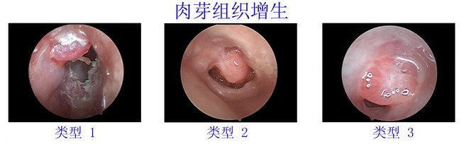 图为:外耳道炎反复发炎后出现的肉芽组织增生